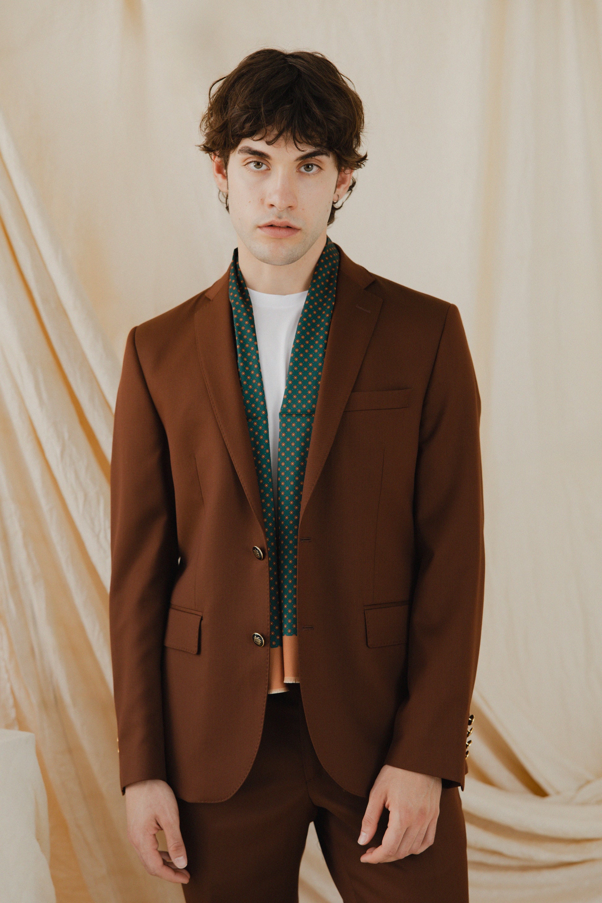 Crafted from superfine Super 110s wool, this Brown Verdi two-button suit offers exceptional quality and comfort. The lightweight fabric ensures breathability and ease of movement, making it ideal for all-day wear. Fully lined for a smooth finish, the suit provides a refined silhouette with a perfect fit tailored to enhance your professional appearance. Its classic design combines timeless style with modern tailoring, making it a versatile choice for formal occasions and business settings alike. Experience the blend of durability and elegance that this expertly constructed wool suit delivers.