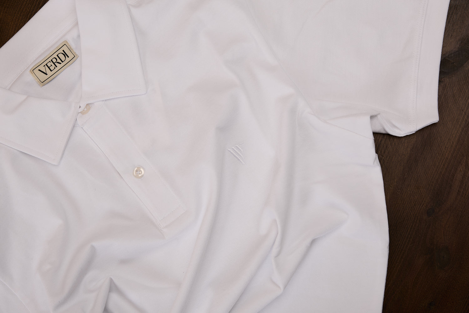 The VERDI White Polo Shirt is crafted from 100% premium cotton, ensuring exceptional quality and comfort. Its easy-iron fabric simplifies maintenance, while the super breathable material keeps you cool throughout the day. Designed and made in Italy, this polo shirt combines classic style with expert craftsmanship, making it an ideal choice for both casual and smart-casual occasions. Experience the perfect blend of durability, comfort, and elegance with this expertly tailored garment.
